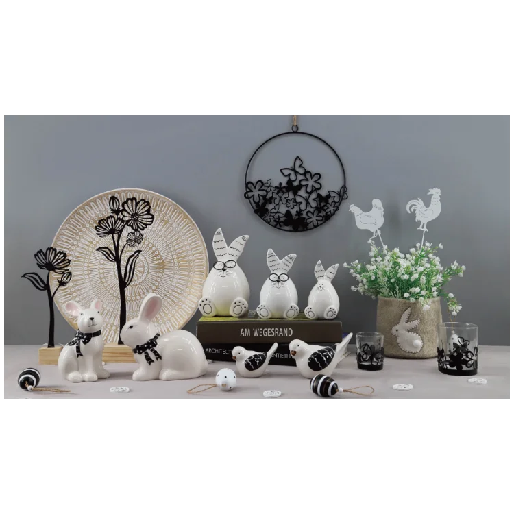 Cute Rabbit Statue Ceramic Crafts Easter Bunny Figurines Garden Yard Patio Decor Living Room Collection