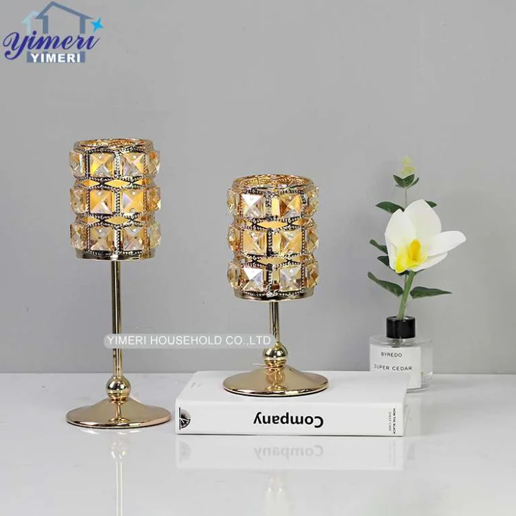 Luxury Gold Crystal Beaded Tea Light Candle Holder for Wedding