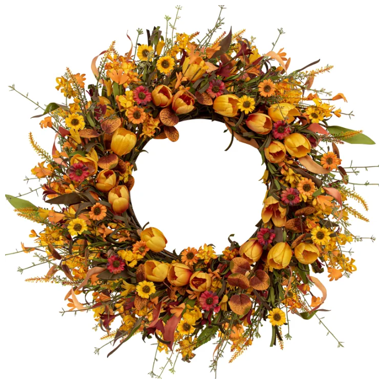 Handmade luxin factory fall wreath with tulips for home decor
