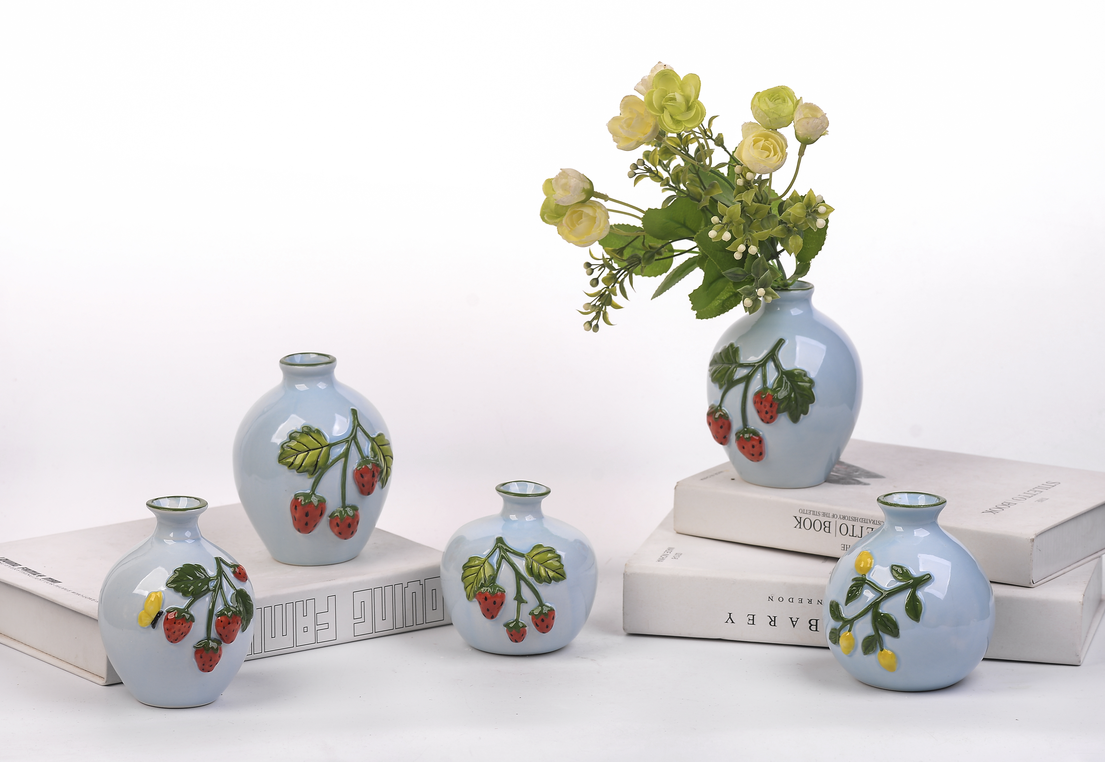 Ceramic Embossed Flower Strawberry Vase Ornament Pink Little Elf for Home decorations