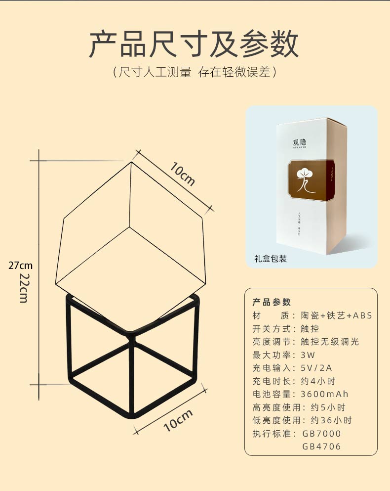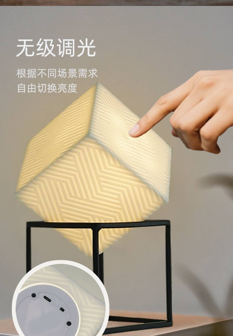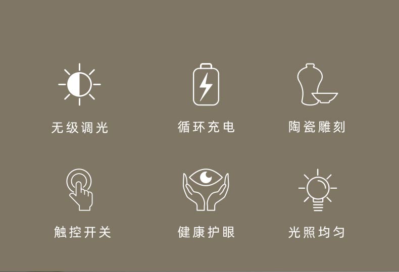 This non-heritage ceramic lamp is made of white porcelain, features USB charging, and offers stepless dimming. Its handle is made of iron, making it portable. The lamp is blue-light-free and flicker-free, serving as an eye-protecting light.