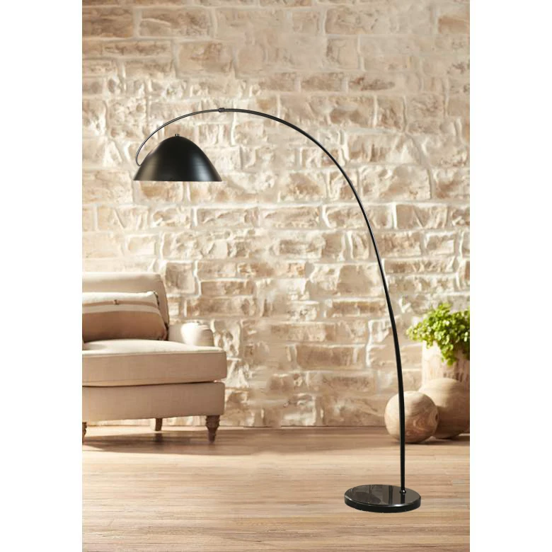 This fishing floor lamp features a long curved metal arm + disc counterweight base design, with all-black metal material presenting an industrial minimalist texture; the arm’s curvature adapts to large-space lighting coverage, and the hemispherical metal lamp head can directionally concentrate light, meeting both ambiance creation and local lighting needs.Materials: Metal (arm, lamp head, base)