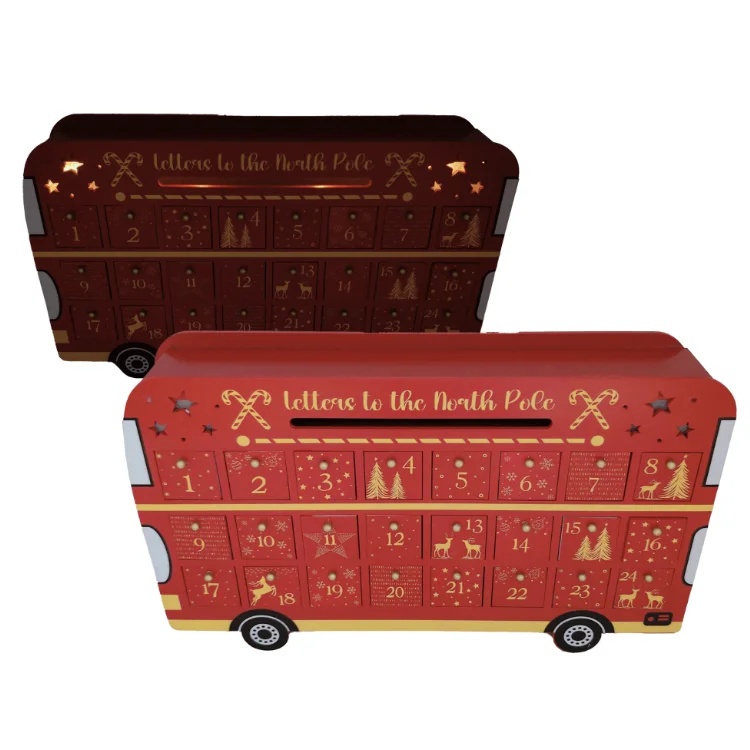 Christmas countdown box in the shape of a red bus
