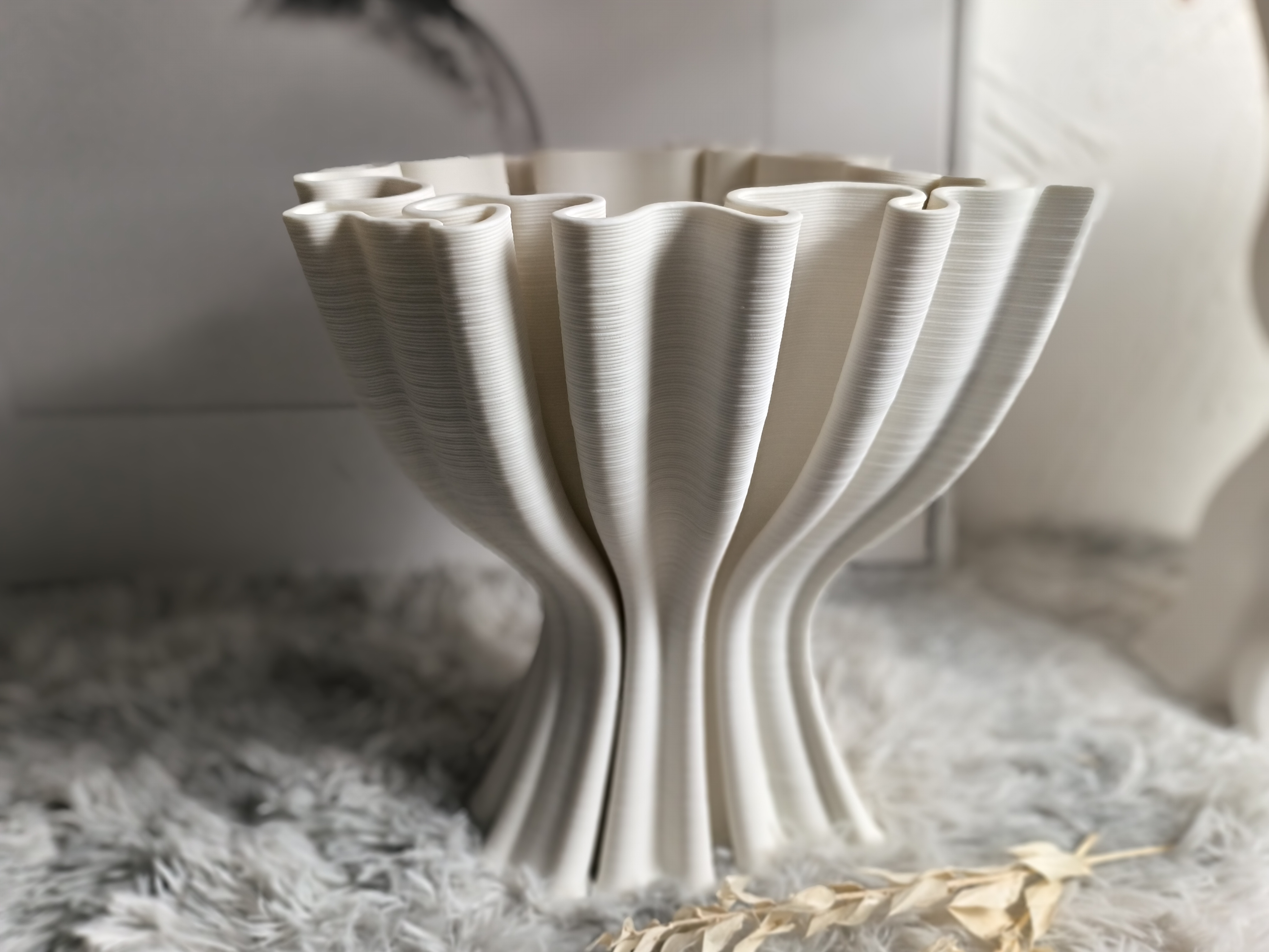 This 3D ceramic printed vase is crafted from high-purity kaolin powder, leveraging industrial-grade high-precision 3D printing technology to break through the limitations of traditional ceramic molding. It achieves one-piece forming of complex streamlined structures and delicate embossed textures. Sintered at high temperature, the product features a dense texture, combining the warm touch and weather resistance of ceramics, with optional matte, glossy and other glaze finishes. Optimized for hydrodynamics, its body proportion is suitable for dried flowers, fresh cut flowers and other flower arrangement scenarios. As an ideal ornament for modern home decoration and hotel space display, it supports mass standardized production.