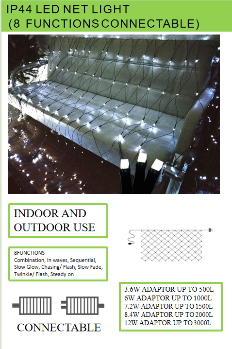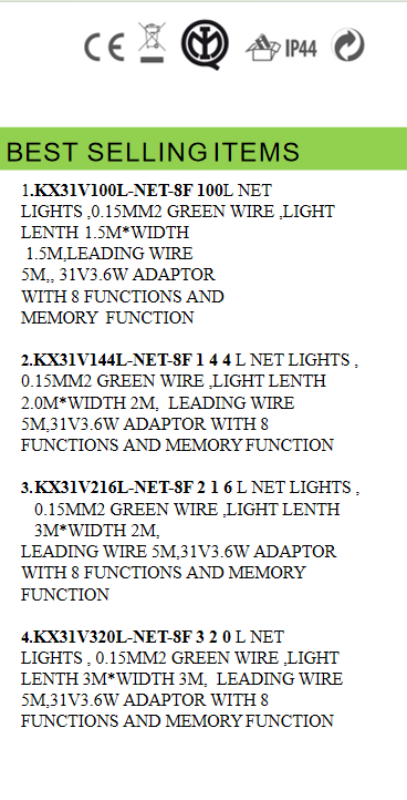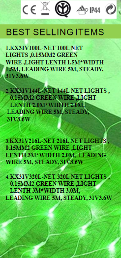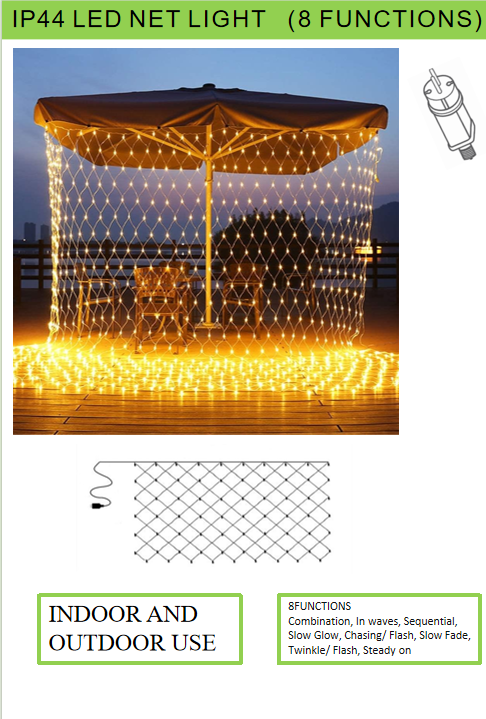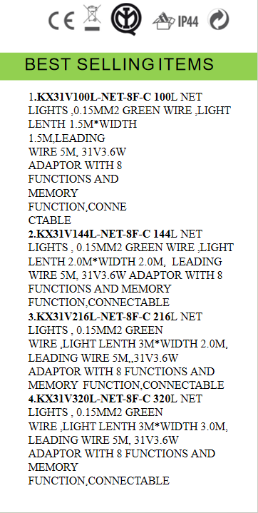 Net lights, customizable in size and quantity, can be equipped with 8 lighting modes or others