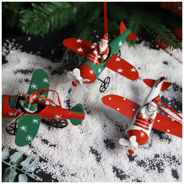 Cute Antique Style Santa Claus Airplane Christmas Tree Hanging Decoration Retro Iron Christmas Pendant Ornaments Party Decor