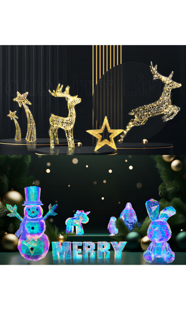 Mirror-effected Tunnel Lights, Neon Lights, Rope Lights, Starburst Lights, Curtain Lights, Rattan-effected Christmas Lights, Soft acrylic Christmas Lights