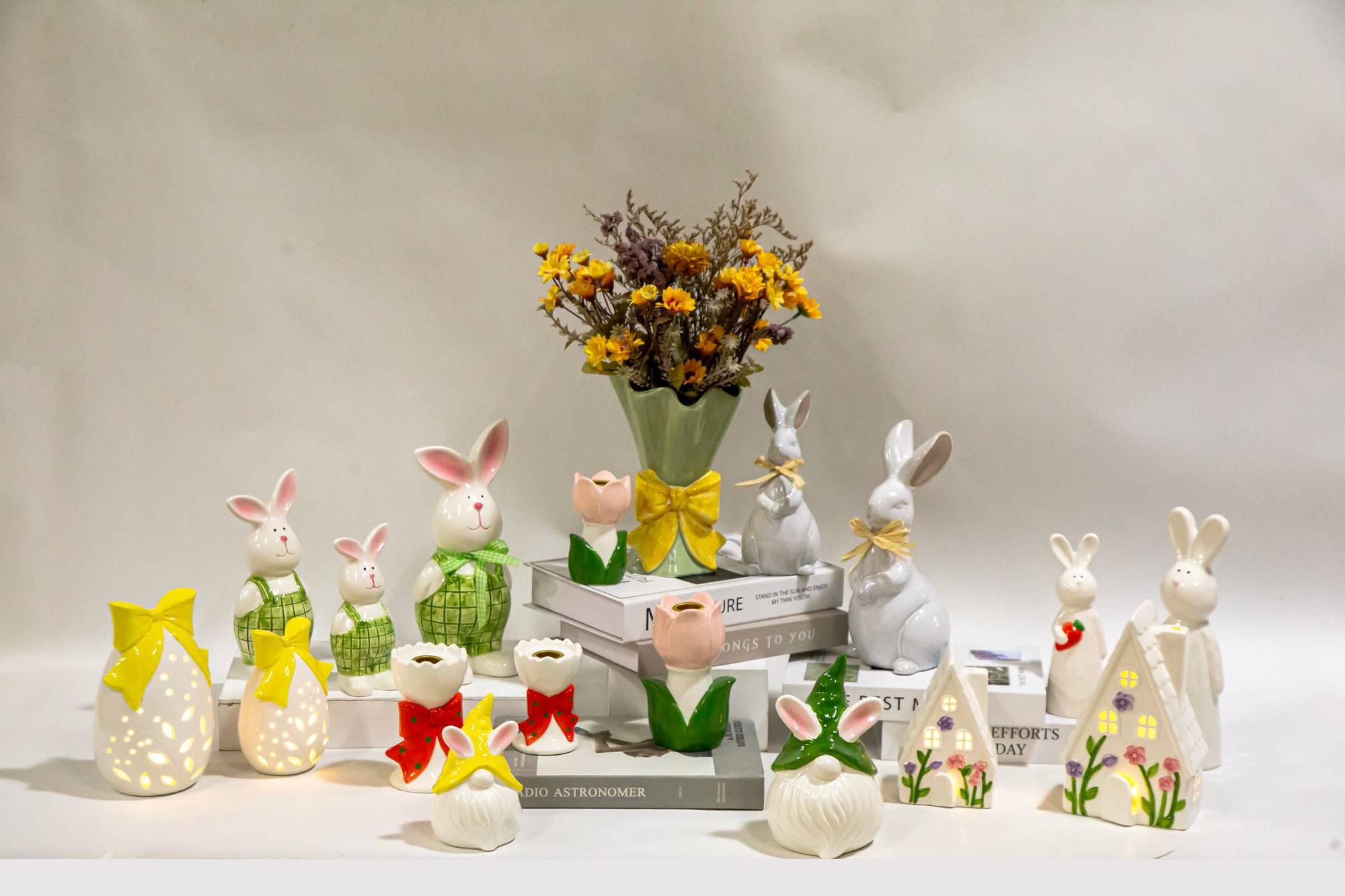 New Spring Time Light up Bunnies Rabbit Figurine Ceramic Ornaments
