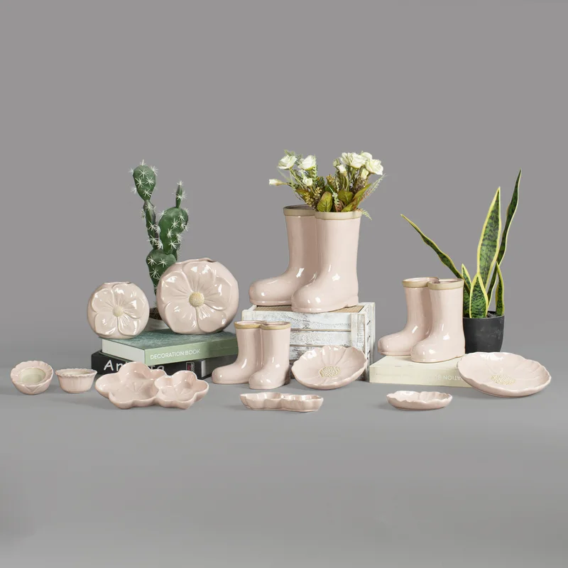 Pink Shoes Flower Red Bow Knot Ornament Pink Little Elf for Home decorations