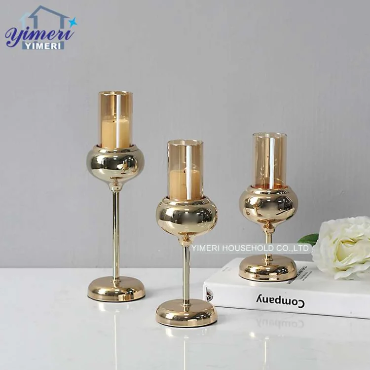 3 Size Small Wrought Iron Candlestick Glass Metal Gold Taper Candle Holder